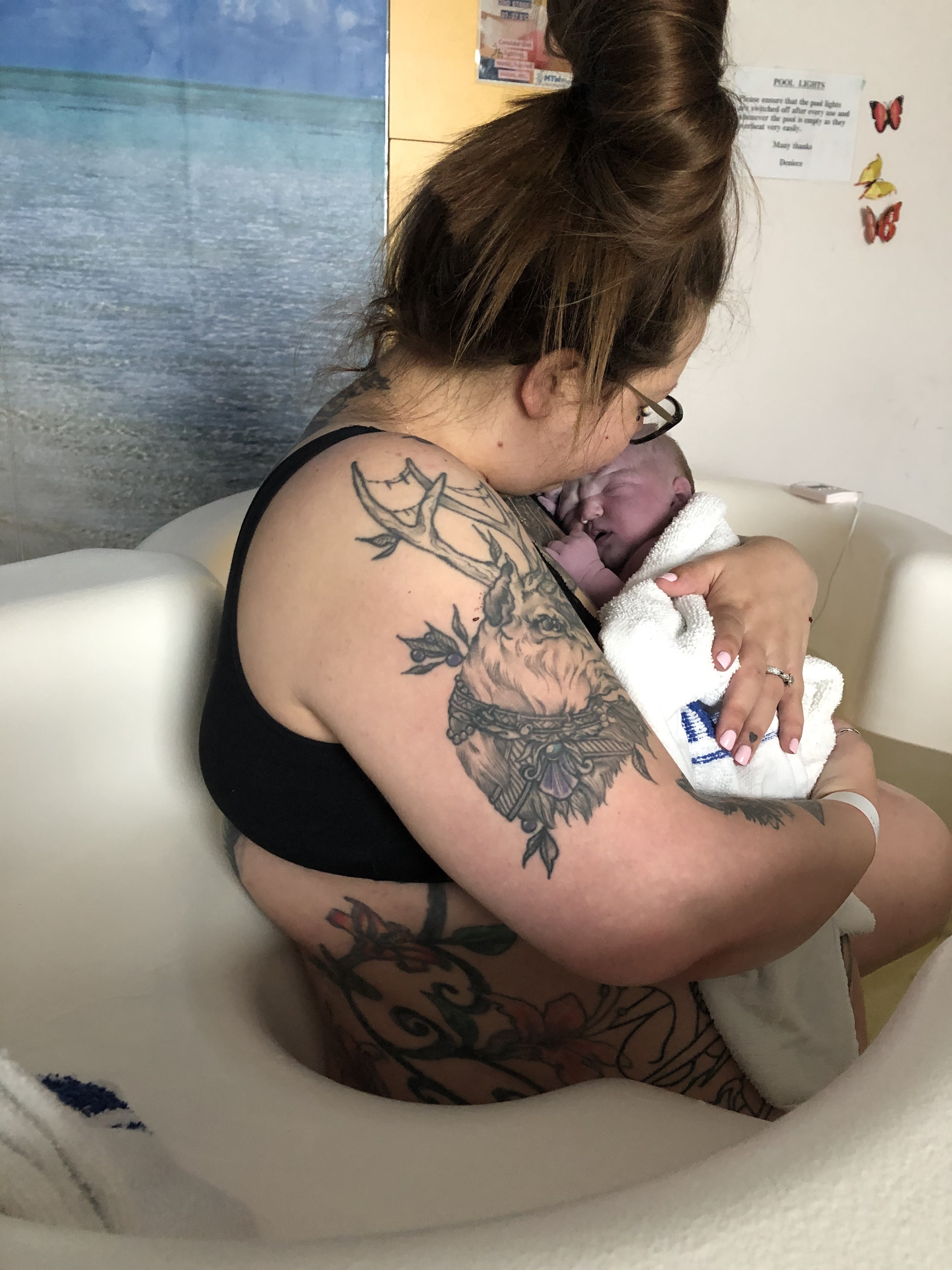 I was in established labour and was welcomed to the birthing suite and into my dream place, my happy place, my calm place, my grounding place. The birthing pool.